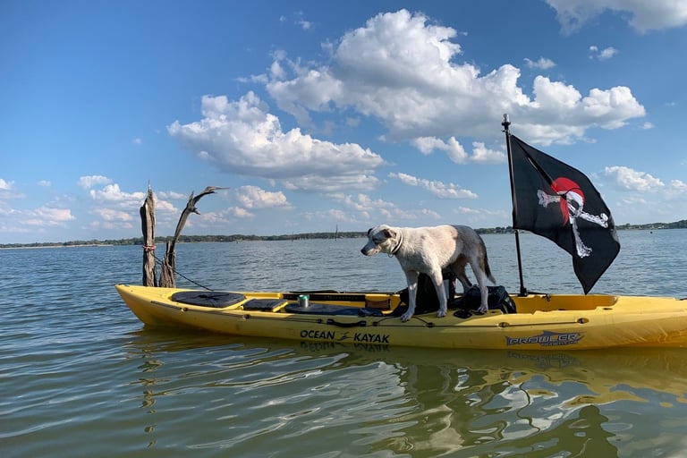 My kayak now has built-in Bluetooth speakers and lights, and sets the mood with music as I sip on a refreshing beer and splash around with the idiots. To ensure my water time isn't interrupted with chasing down a boat, I use a brushhook to securely tie my kayak to a tree stump in the chest-high water, allowing me to fully relax and enjoy the serene beauty of my little slice of paradise.